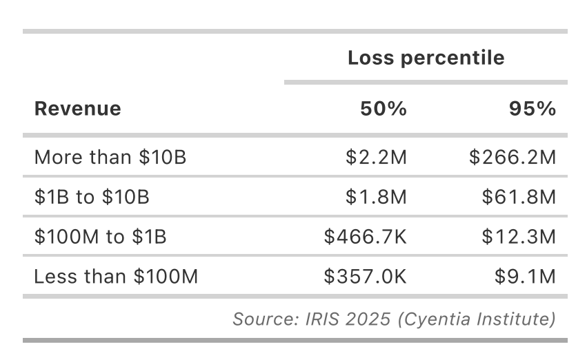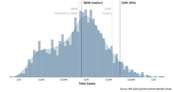 However, the 2025 Information Risk Insights Study (IRIS), exploring the distribution of financial losses from cyber events, presents a different perspective: