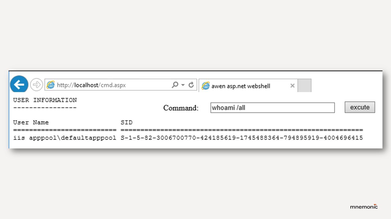 Red Team testing is designed to measure and improve an organisation’s ability to detect and respond to realistic threats. In a recent Threat Intelligence-Based Ethical Red-Team (TIBER) test, the mnemonic Red Team built and deployed a custom web shell to emulate the operations of a specific threat actor.
